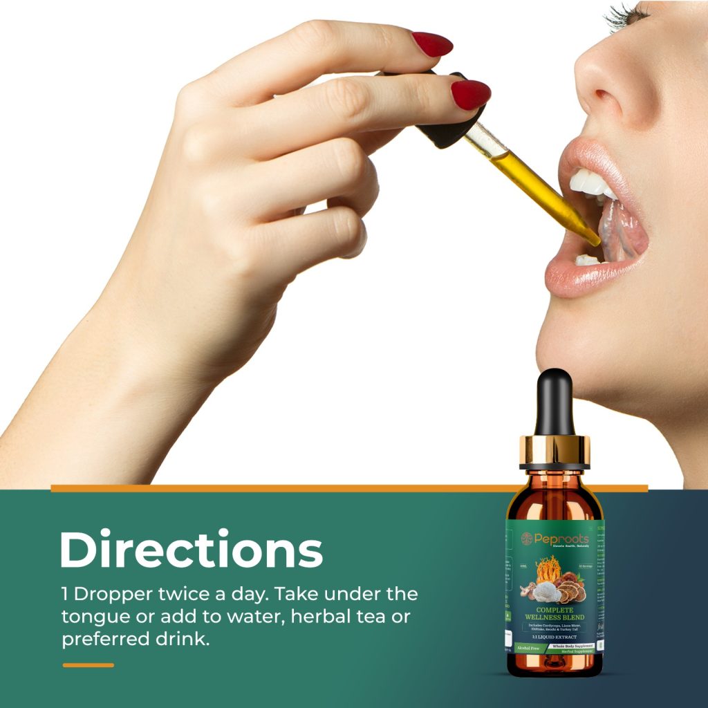 - Directions: Add your liquid extract directly on your tongue or into your coffee, smoothie, tea or water.